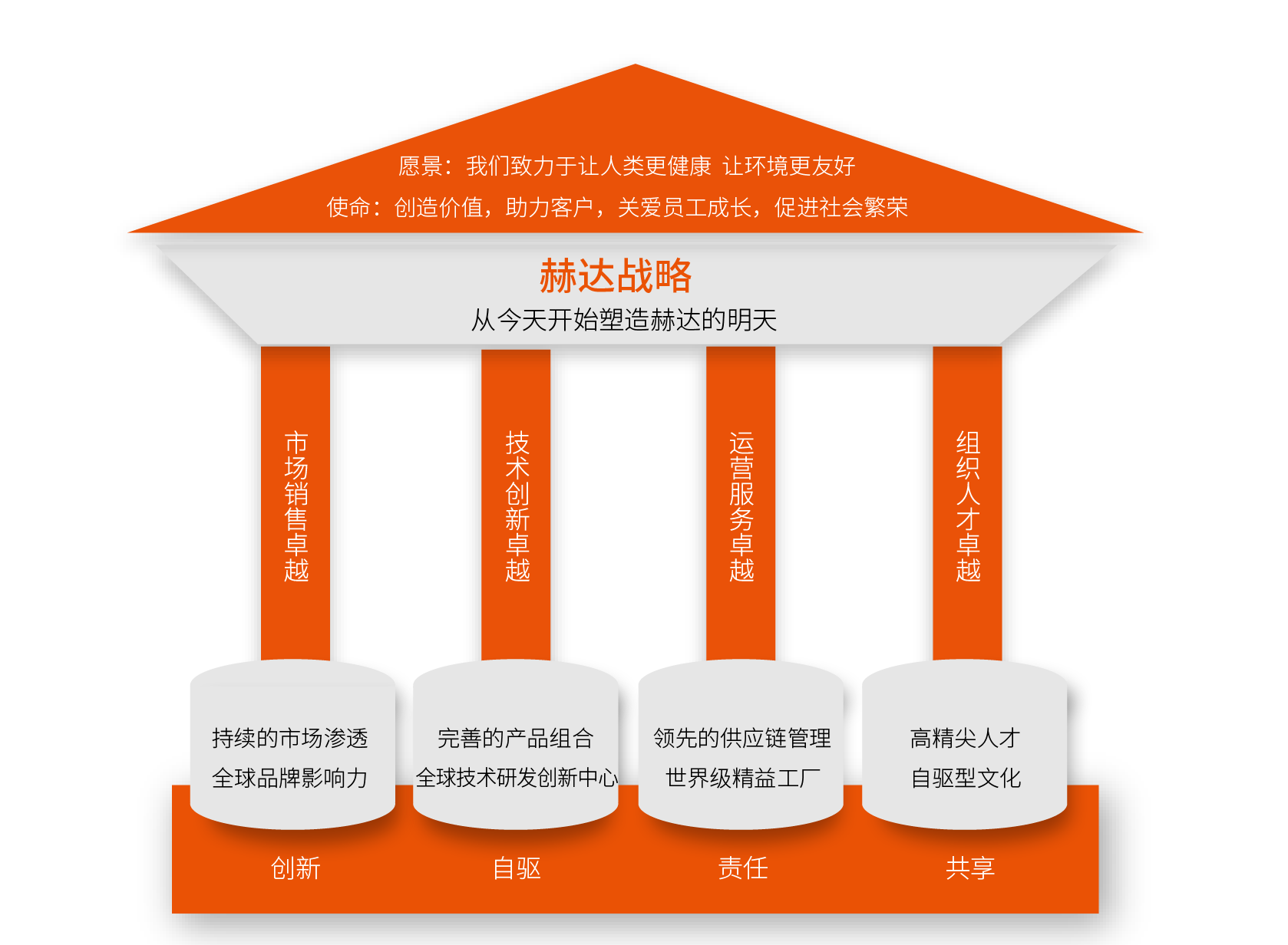 赫達,一直走在追求卓越的路上,以戰略與業務的持續發展為目標,創新、自驅、突破。未來,赫達將通過穩定的產品質量、領先的技術創新、全球化的業務布局以及世界一流的管理,塑造“赫達核心競爭力”,成為國際化一流企業。